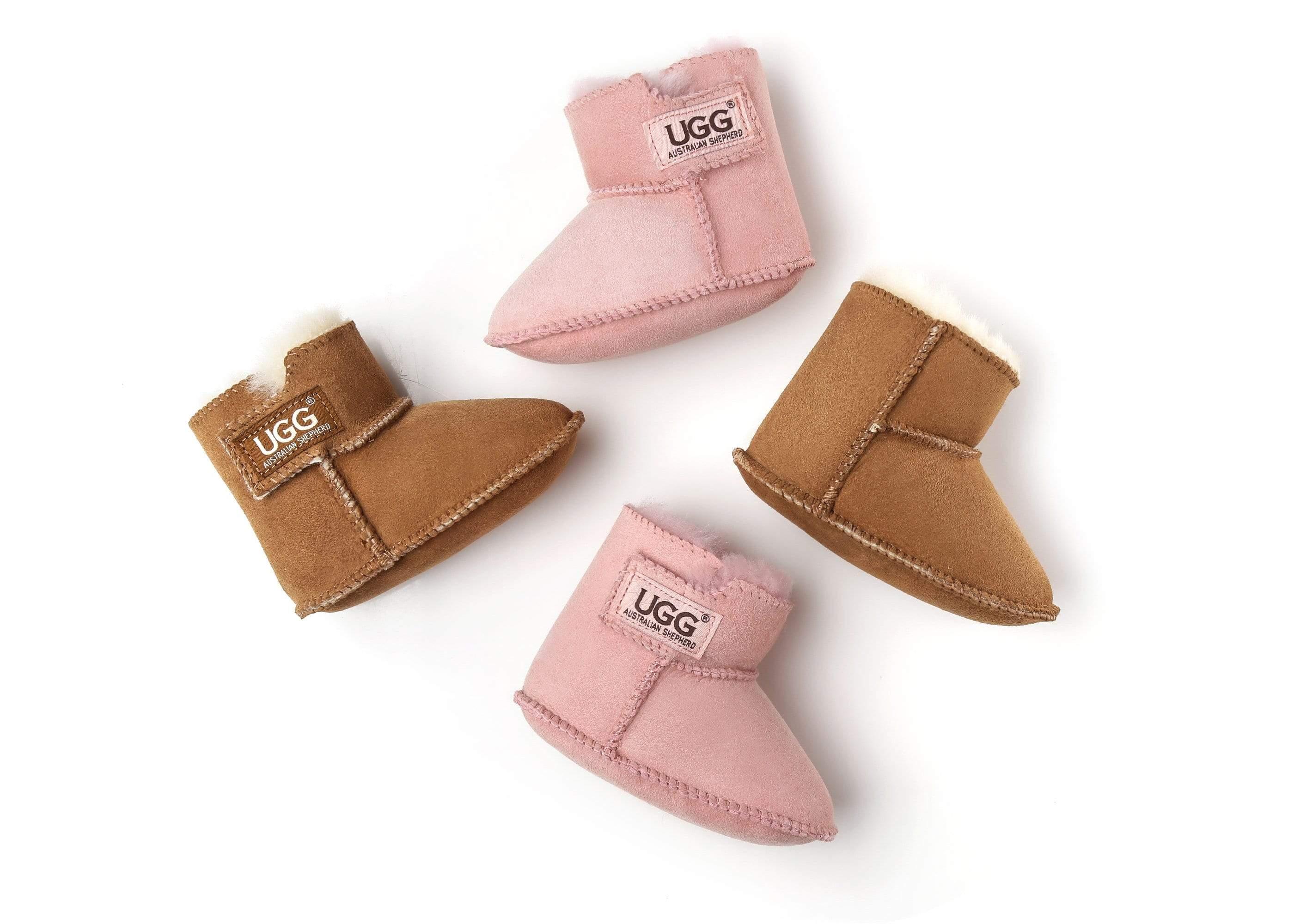 Keep your little one warm and cosy all winter long with the Baby Erin Booties. Crafted with premium Australian sheepskin, these adorable booties feature a soft wool interior that’s naturally breathable and moisture-wicking—keeping bub’s feet warm in winter and cool in summer. Designed with a secure Velcro tab, they’re easy to slip on and off and can be adjusted for a snug, stay-on fit. Add the comfort of walking on a soft wool rug to your baby’s everyday wear with these essential mini uggs.