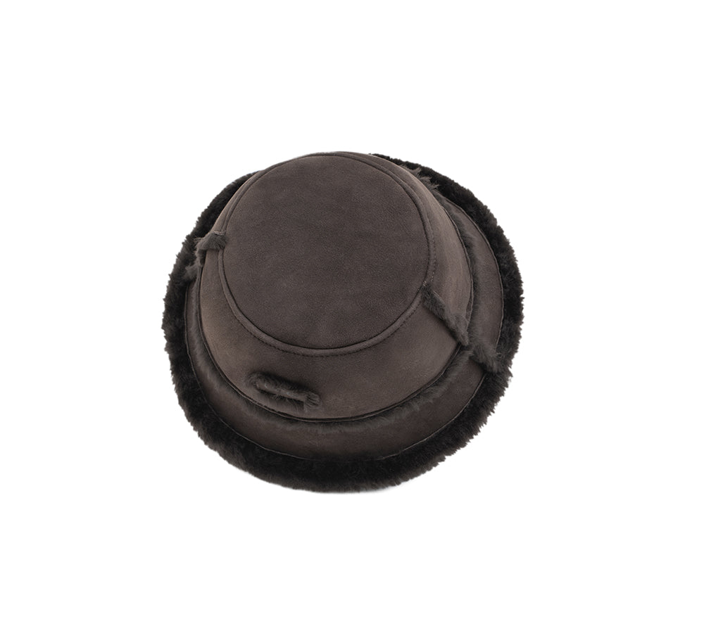 Stay stylishly warm with the Australian Shepherd Stacea Bucket Hat, crafted from genuine double-faced sheepskin wool for ultra-soft comfort. This versatile winter essential features a reversible design with plush wool lining, offering two looks in one. The classic bucket silhouette pairs perfectly with everything from casual tees to tailored coats, making it your go-to accessory for autumn and winter.