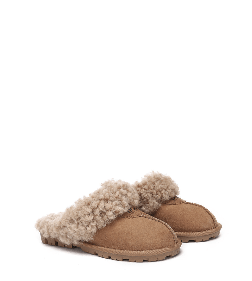 Discover the ultimate in relaxation and warmth with the Waffle Curly UGG Slippers by Australian Shepherd. Featuring a unique curly sheepskin wool collar, these slippers bring together elegance, comfort, and cosiness in a chic and wearable design. Made with premium double-faced sheepskin, the plush interior naturally regulates temperature and wicks away moistureākeeping your feet warm and dry all day. Whether you're lounging at home or stepping outside, the lightweight EVA sole delivers grip and comfort wherever you go. Itās the most adorable and snug style of the season.