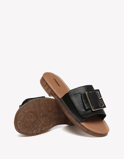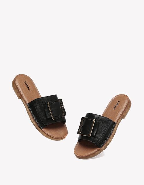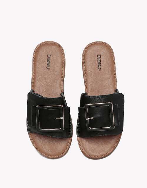 Experience unparalleled comfort with the EVERAU Bera Leather Buckle Slides, where sophisticated design meets cloud-like cushioning. These premium slides feature an ultra-soft sponge footbed that cradles your feet, combined with elegant cow leather bows and metal square buckles for a touch of elevated style. Perfect for both leisure and everyday wear, their versatile black and white color options seamlessly complement any outfit in your wardrobe.