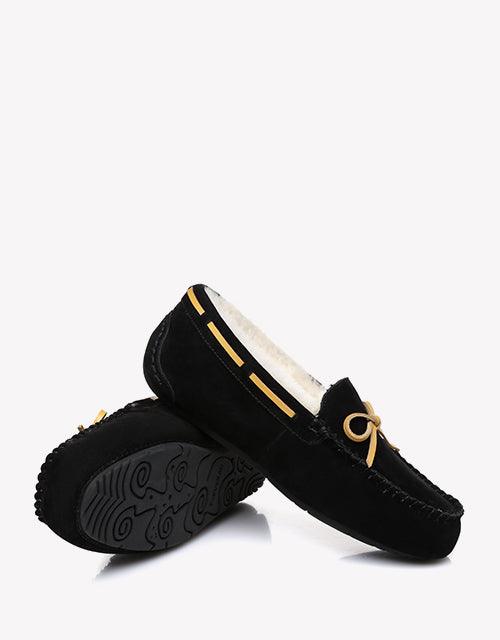 Experience cloud-like comfort with the Miracle Moccasin UGG Slippers, where luxurious sheepskin wool meets stylish practicality. These incredibly soft slippers feature a plush pig leather upper with a charming bow detail, paired with a grippy rubber sole that transitions seamlessly from indoor comfort to outdoor wear. Available in nine beautiful colors from classic Chestnut to vibrant Dawn Pink, they'll keep your feet toasty warm while looking effortlessly chic.