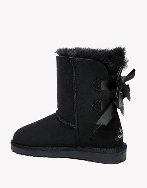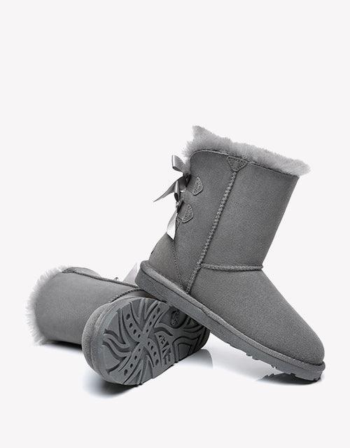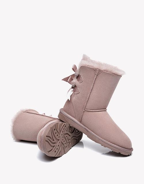 Step into luxurious comfort with our Short Back Bow Boots, where timeless Ugg appeal meets playful elegance. These boots combine the warmth of 100% genuine Australian sheepskin with charming ribbon ties that add a feminine flourish to your everyday style. Perfect for both lazy Sundays at home and casual outings, they wrap your feet in cloud-like softness while making a subtle fashion statement.