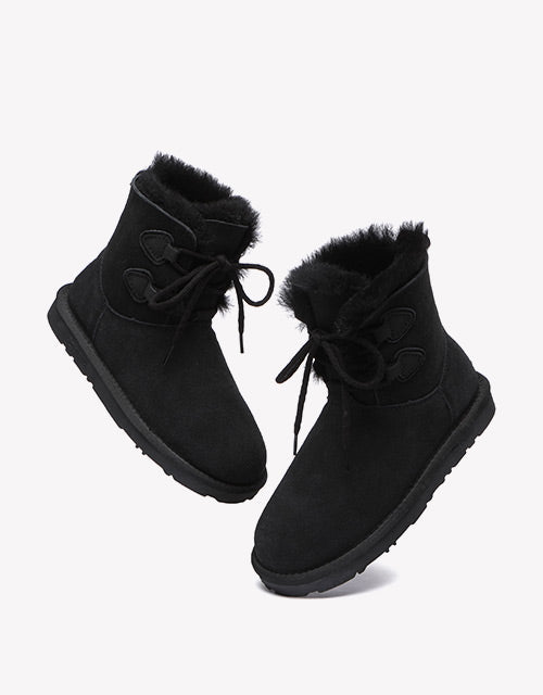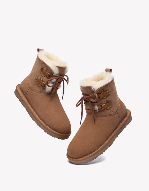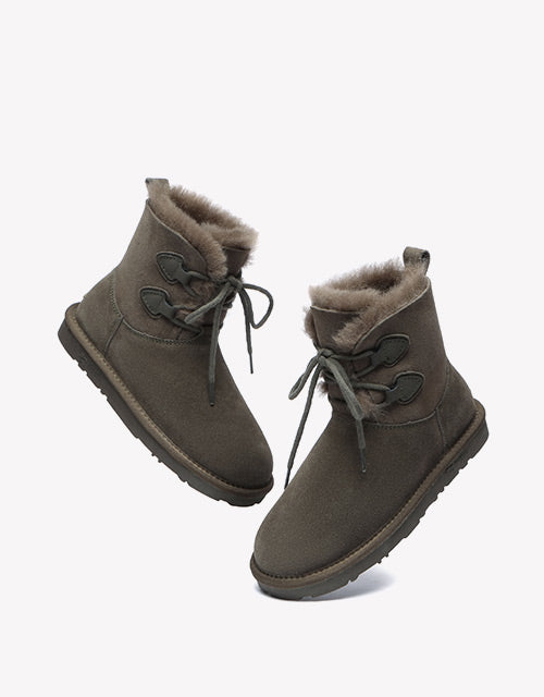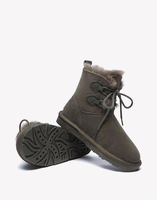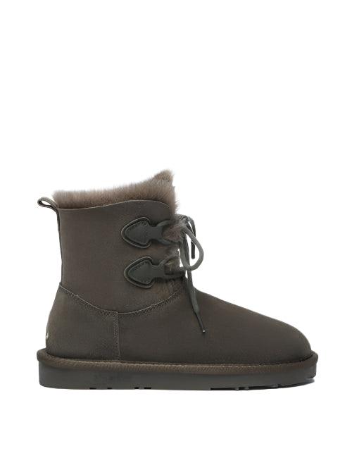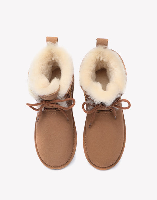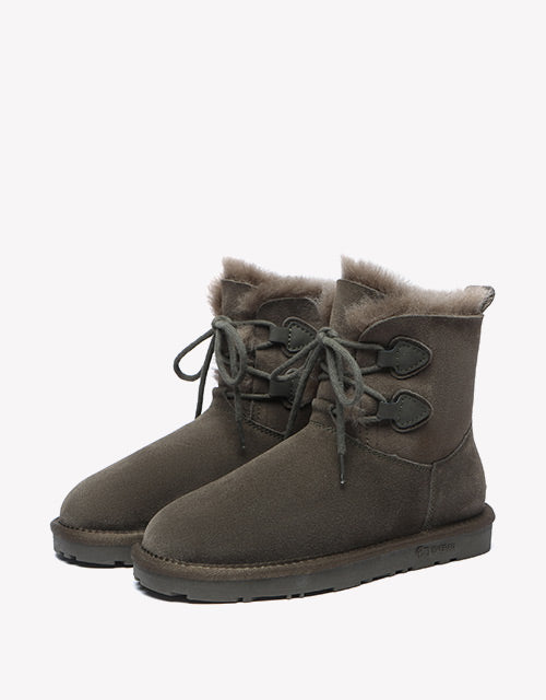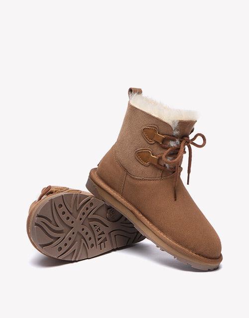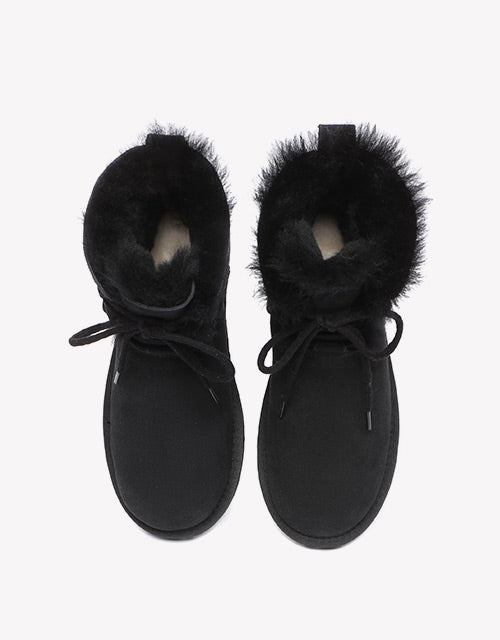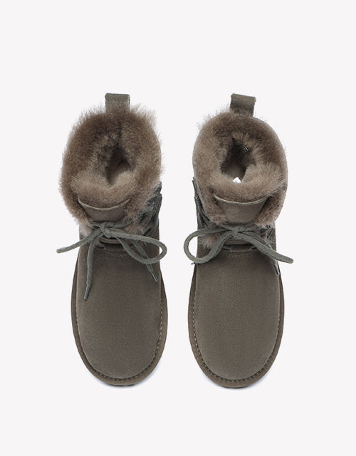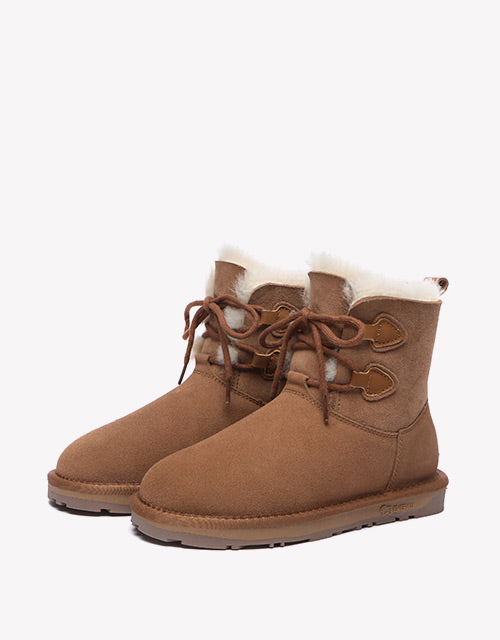 Redefine winter footwear with our Short Stark Shorts Boots, where contemporary design meets ultimate comfort. Featuring a distinctive front lace detail, these boots elevate your cold-weather style while wrapping your feet in 100% genuine sheepskin wool for exceptional warmth. Perfect for urban adventures or cozy nights in, they combine fashion-forward aesthetics with practical winter protection.