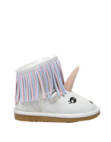 Step into a realm of enchantment with the Unicorn Kids Plus boots, where whimsical charm meets practical comfort. These delightful boots are designed to inspire your child's imagination while keeping them warm and cozy throughout the day. With a soft cow suede upper and a plush sheepskin lining, every step feels like a magical journey. Whether it's puddle-jumping adventures or storytime snuggles, these boots are the perfect companion.
