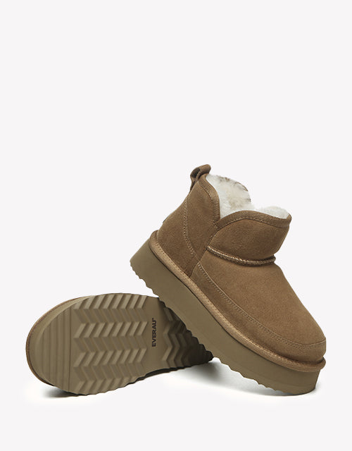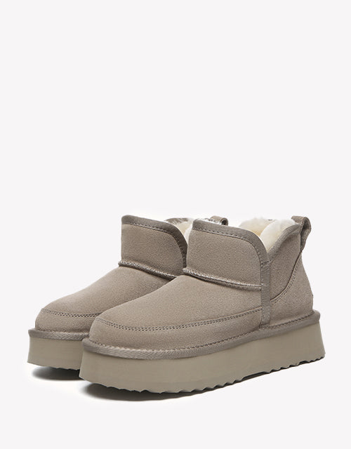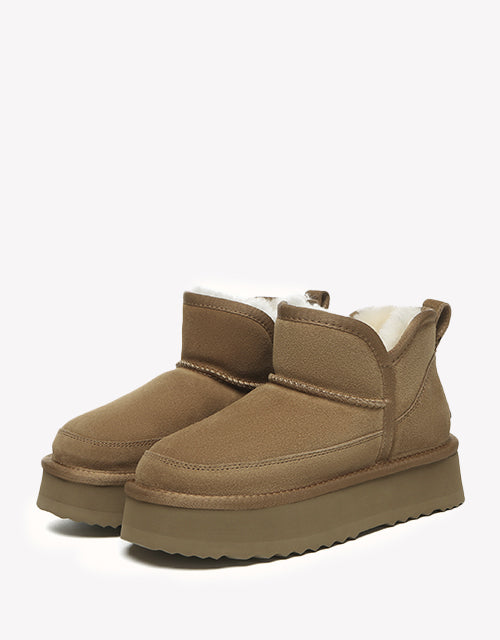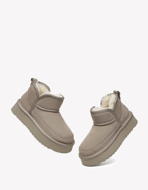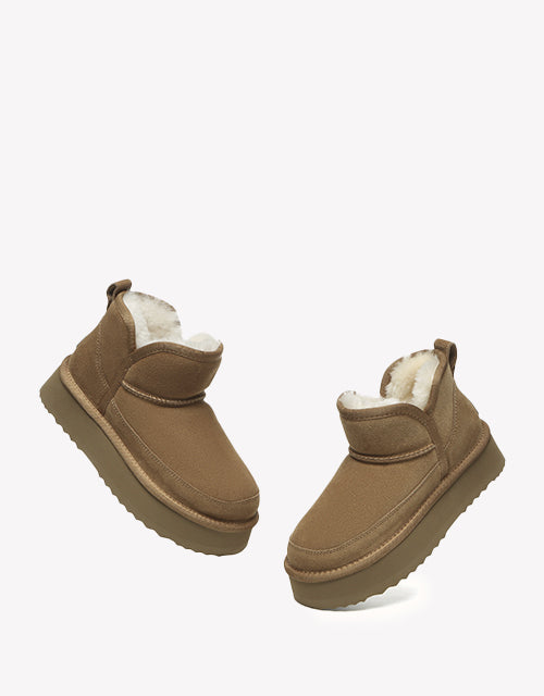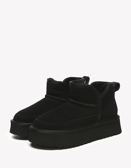Step into luxury with the Vesper Platform Ankle Boots, where unparalleled comfort meets sophisticated style. Perfect for everyday wear, these boots effortlessly transition from casual outings to elegant evenings. Crafted from 100% genuine cow suede with a soft sheepskin wool lining, they envelop your feet in warmthāideal for cooler days without compromising on style.