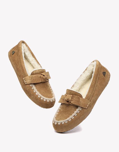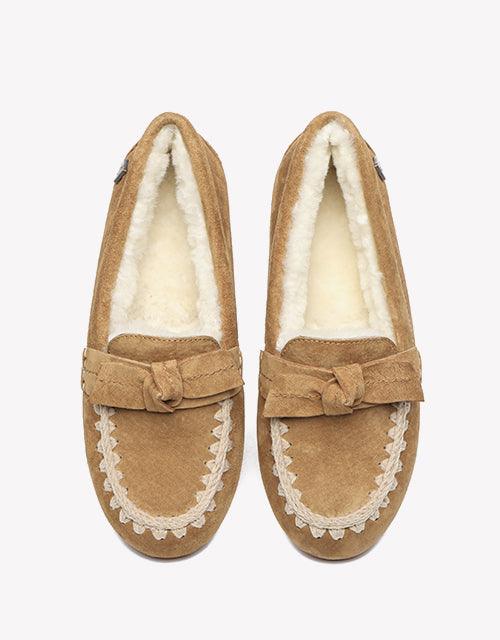 Step into unparalleled comfort and style with our Woven Moccasins. Crafted with meticulous attention to detail, these exquisite slippers cradle your feet in luxurious warmth, turning every step into a treat. Whether you're lounging at home, cozying up by the fire, or stepping out for a quick errand, these moccasins add a touch of elegance to your everyday moments. Made from 100% genuine sheepskin wool and premium pigskin, they blend durability with indulgent softnessāexactly what your feet deserve.